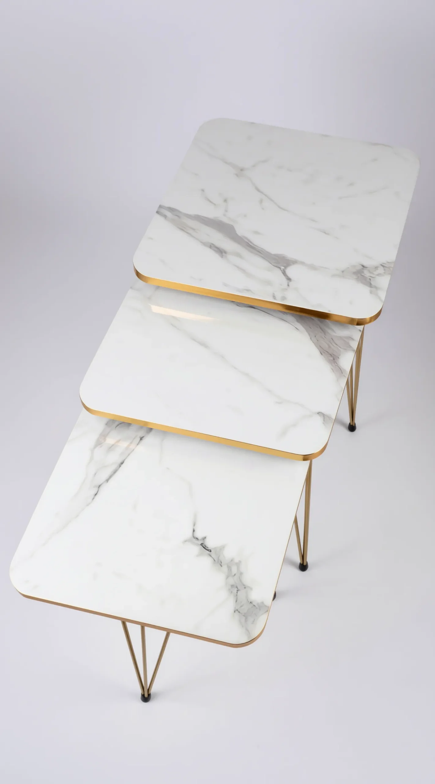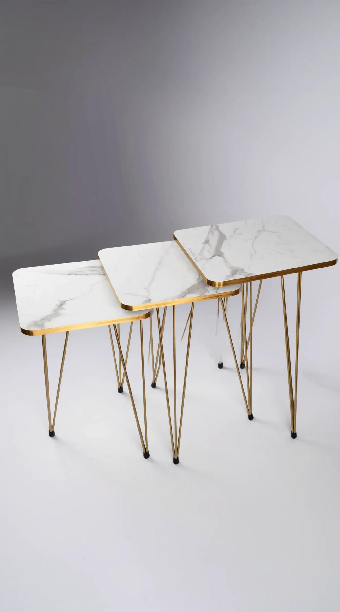 Maximize your style and your square footage with the Carrara Luxe Marble Nesting Tables. This set of three graduated side tables from Trendy Livings is designed for the dynamic home, offering the perfect blend of functional surface area and sculptural beauty. Each table features a premium white marble-effect top with deep grey veining, encased in a slim, lustrous gold frame that catches the light from every angle.