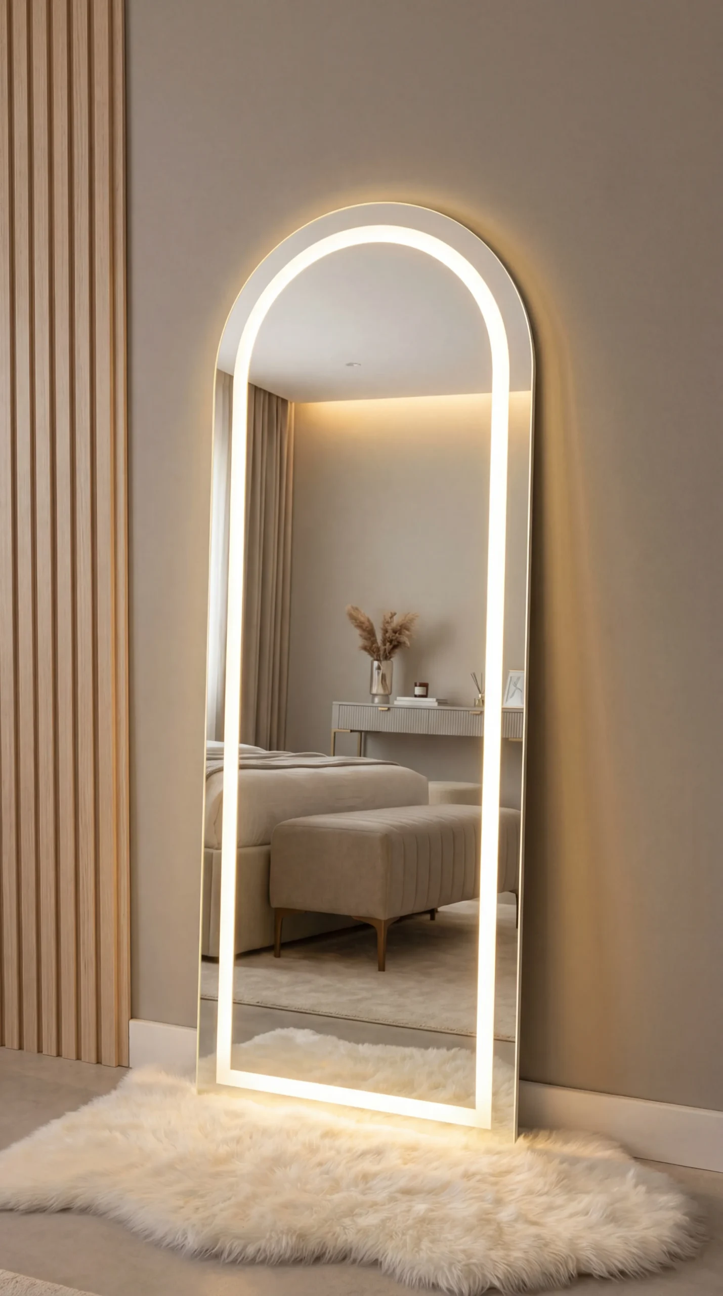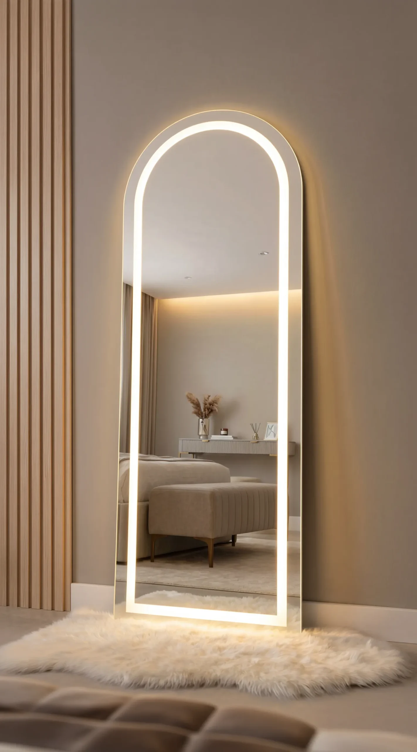 Transform your dressing area into a professional-grade studio with the Lumiere Arched LED Full-Length Mirror. This piece is the ultimate fusion of technology and interior design, featuring an integrated LED light path that follows the mirror’s graceful curve. The soft, diffused lighting eliminates harsh shadows, providing the ideal environment for applying makeup, styling outfits, or capturing the perfect mirror selfie.