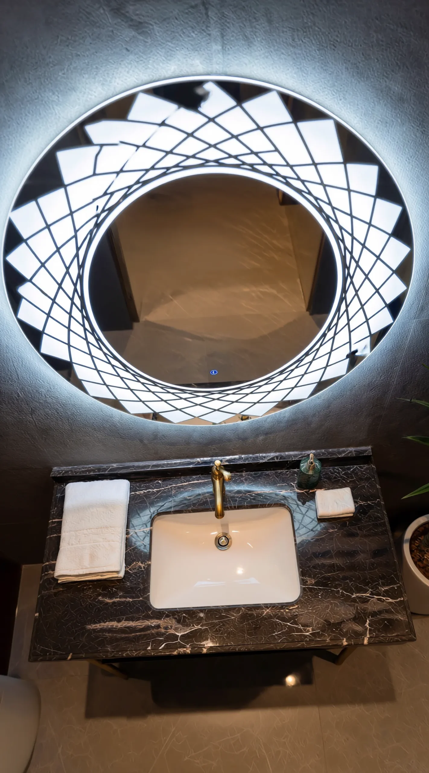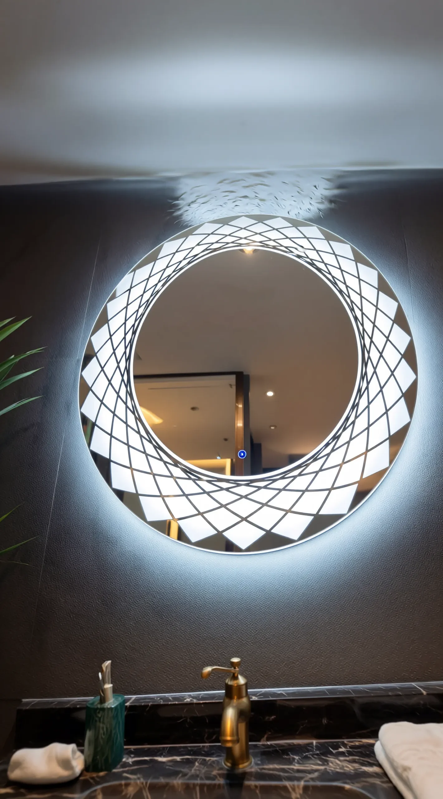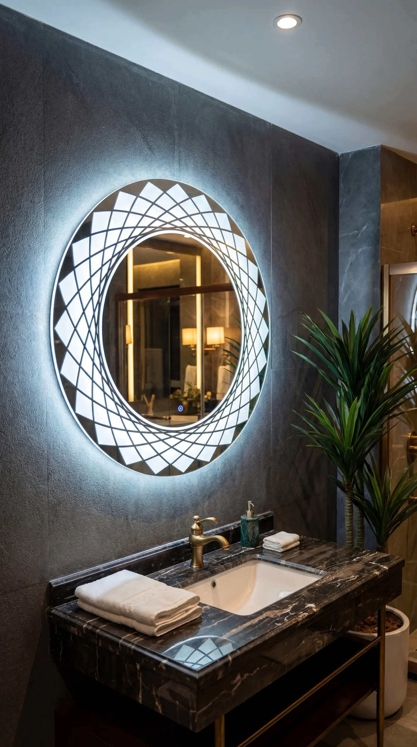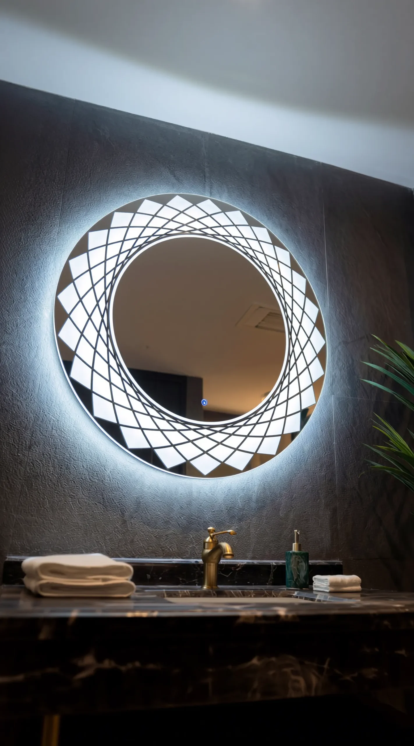 Mandala Prism Smart LED Mirror – Geometric Backlit Circular Vanity Mirror