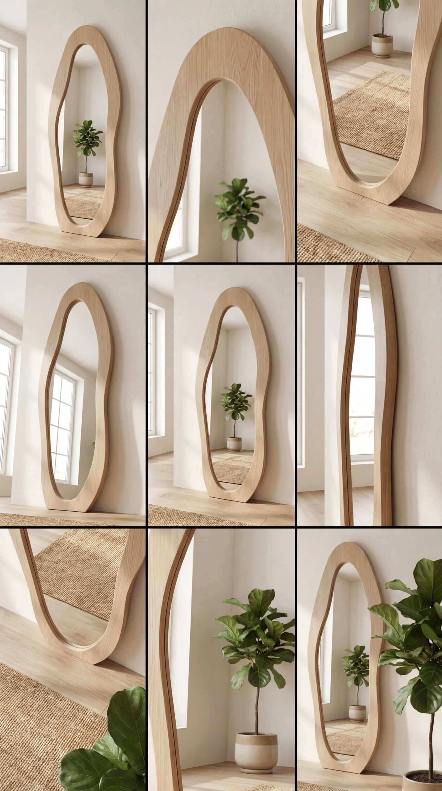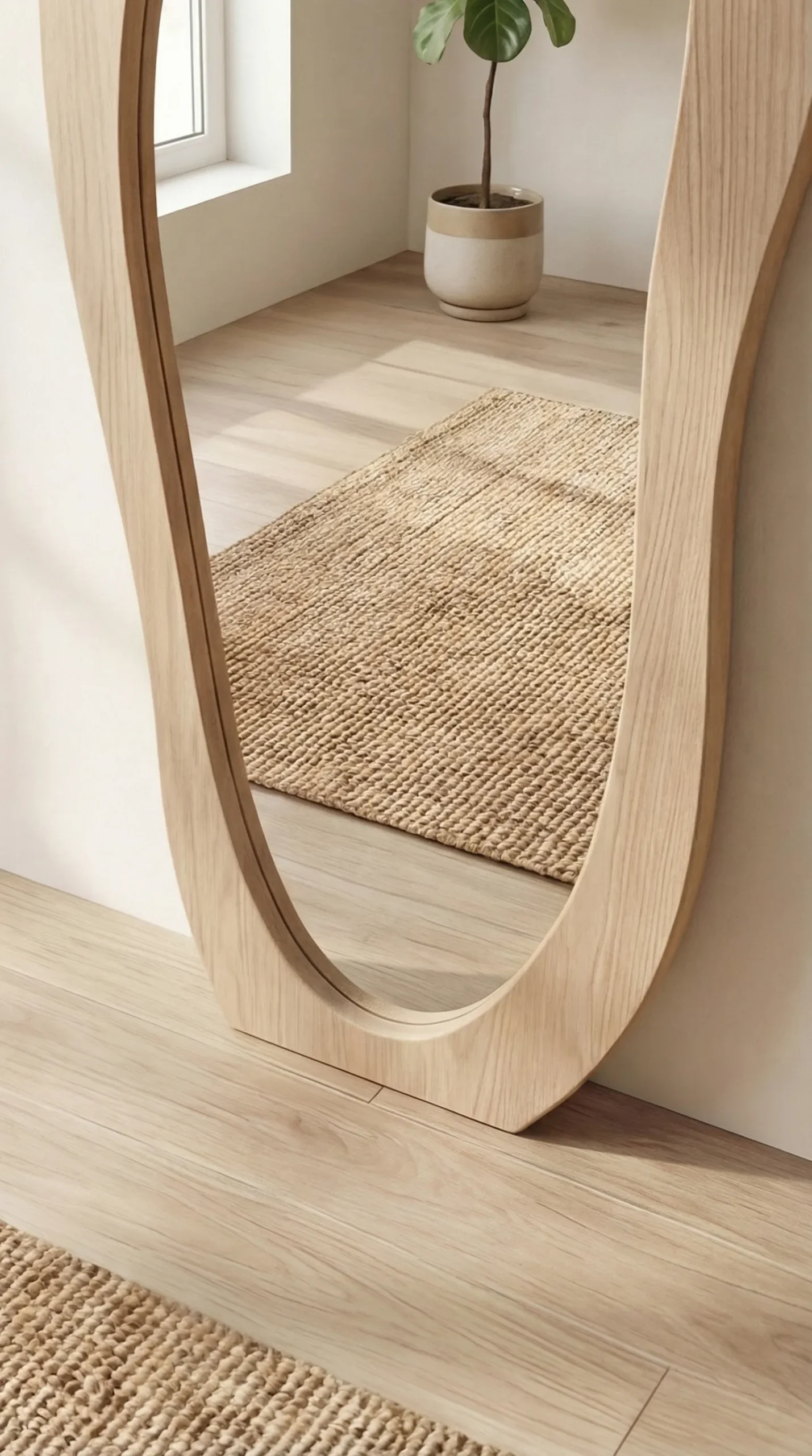 Infuse your home with the calming energy of nature with our Organic Wave Full-Length Standing Mirror. Moving away from traditional rectangular forms, this mirror features a fluid, hand-sculpted aesthetic that mimics the irregular beauty of a shoreline. The light oak frame is carefully finished to highlight the natural swirling patterns of the wood, making each piece feel like a bespoke addition to your Trendy Livings collection.