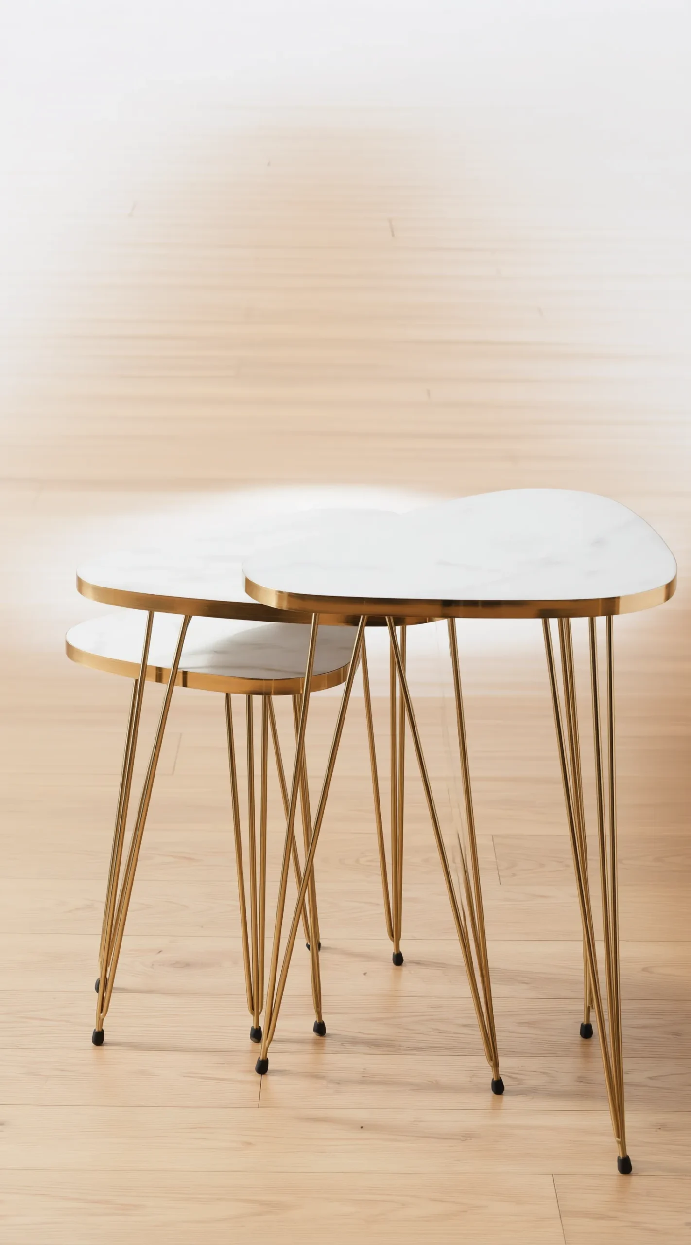 The architectural charm of these tables lies in their graduated proportions. Designed to nest seamlessly together, they allow you to customize your surface area based on your needs—whether you’re spreading them out for a social gathering or tucking them away to maintain a minimalist footprint. The signature gold hairpin legs provide a sturdy foundation while keeping the overall look light and unobstructed, making them an ideal choice for smaller rooms or as a sculptural addition to a larger master suite.
